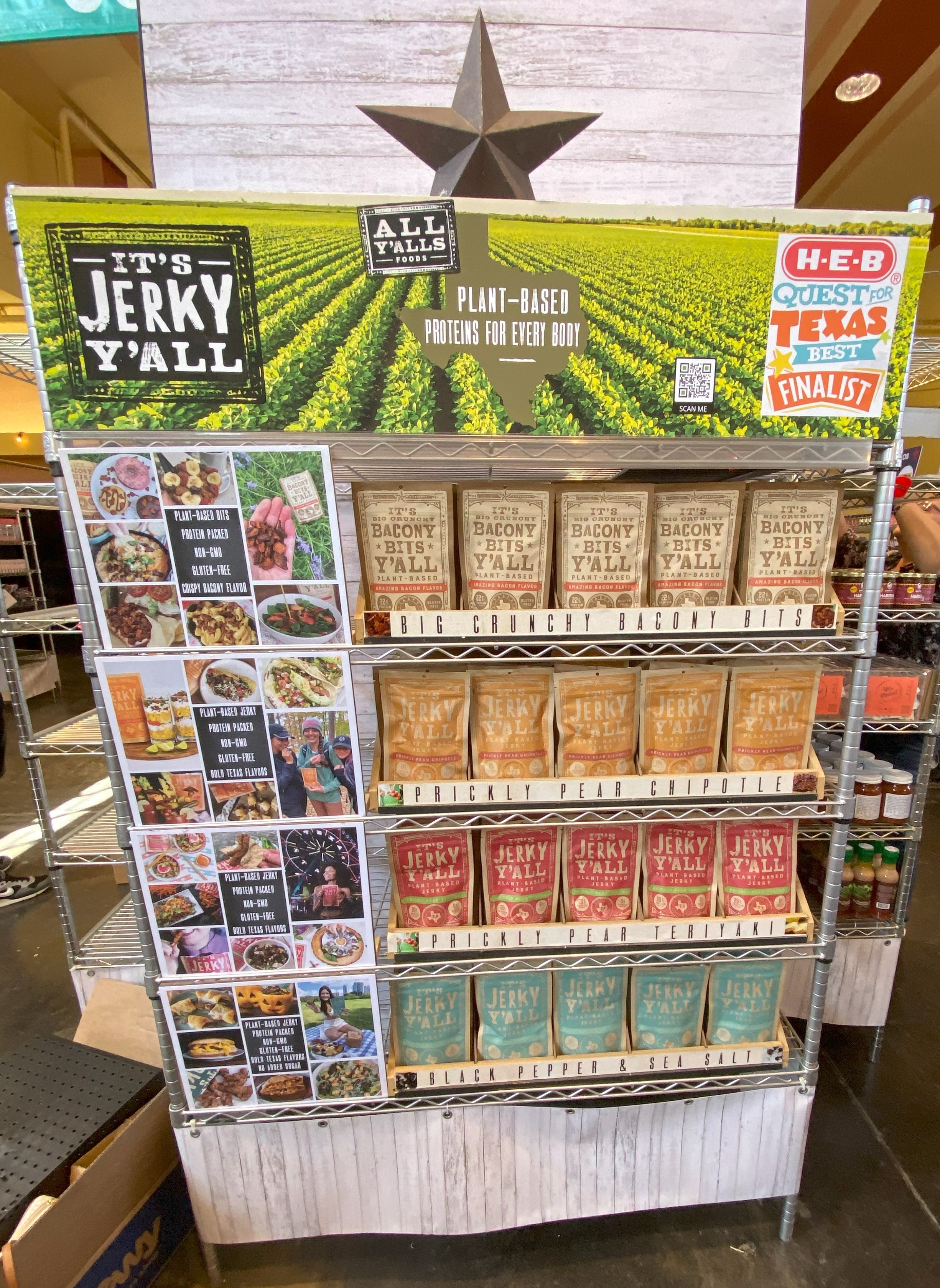 Black Pepper & Sea Salt, Prickly Pear Teriyaki, Prickly Pear Chipotle and Big Crunchy Bacony Bits -